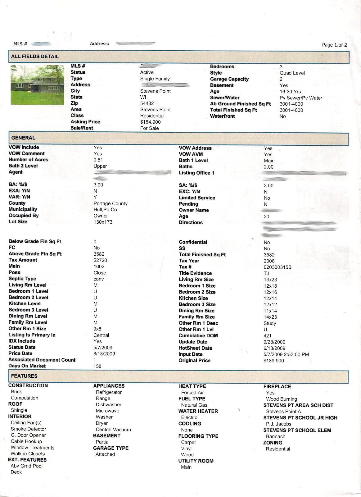 After a fair amount of negotiations with the previous sellers, I purchased the home for $169,900. I bought this house at a time when the housing market was really down, largely due to the morgage/financial issues of the time. I should note here that Central WI wasn't hit by collapsing home values the same way that other places were.